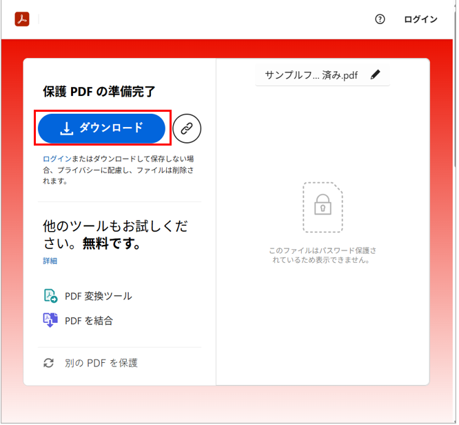 ■ PDFをパスワード保護する方法(AdobeのWEBサービスを使用)