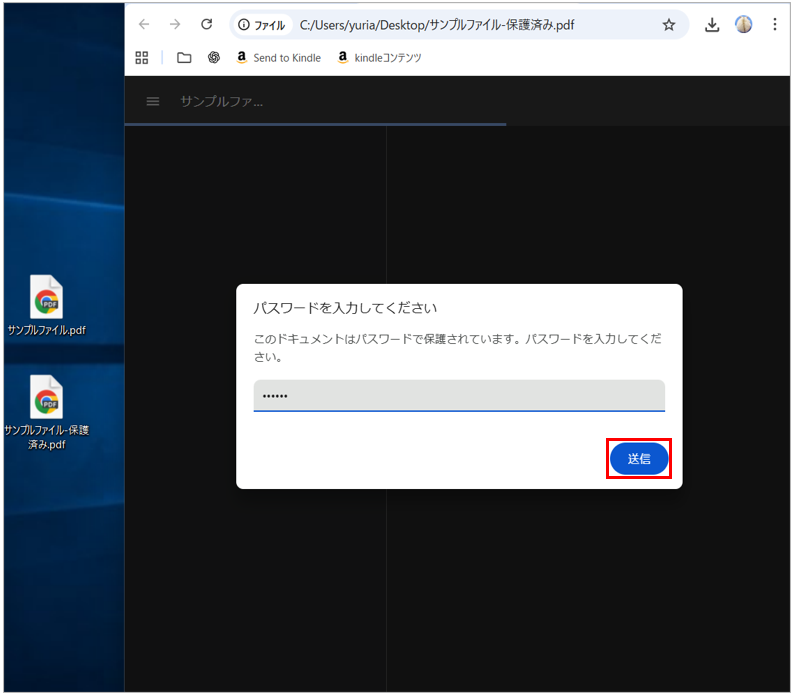 5)PDFを開き、設定したパスワードを入力する